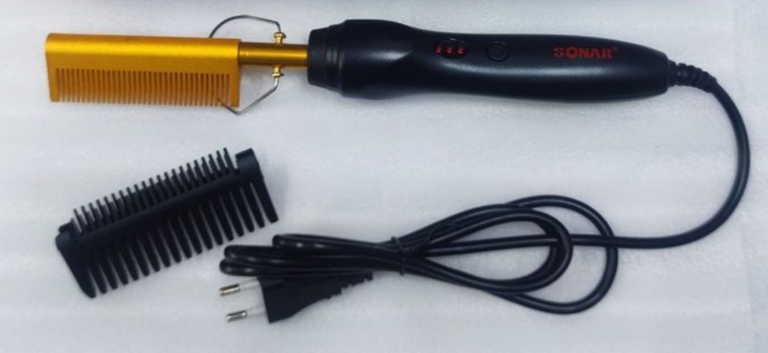 This hot comb is heated and used to straighten the hair Voltage: 110-240V Volts (Universal Global Voltage) Frequency: 50/60Hz Power: 80W Fever: PTC Subject Material: ABS Thermal conductive material: tourmaline ceramics Heat conduction diameter: 16mm-20mm Temperature Control and Efficiency Adjustment: LCD, 160C-200C Line length: about 2 meters.